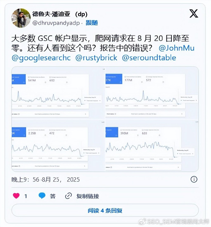 該問題始于 2025 年 8 月 8 日,手機(jī)目前正在解決中目前尚不清楚有多少百分比的谷歌歌鍵工具站點受到影響谷歌已確認(rèn)修復(fù)了其爬蟲影響“某些網(wǎng)站”的問題該問題是 Google 端使用 Googlebot 的“減少/波動抓取”。